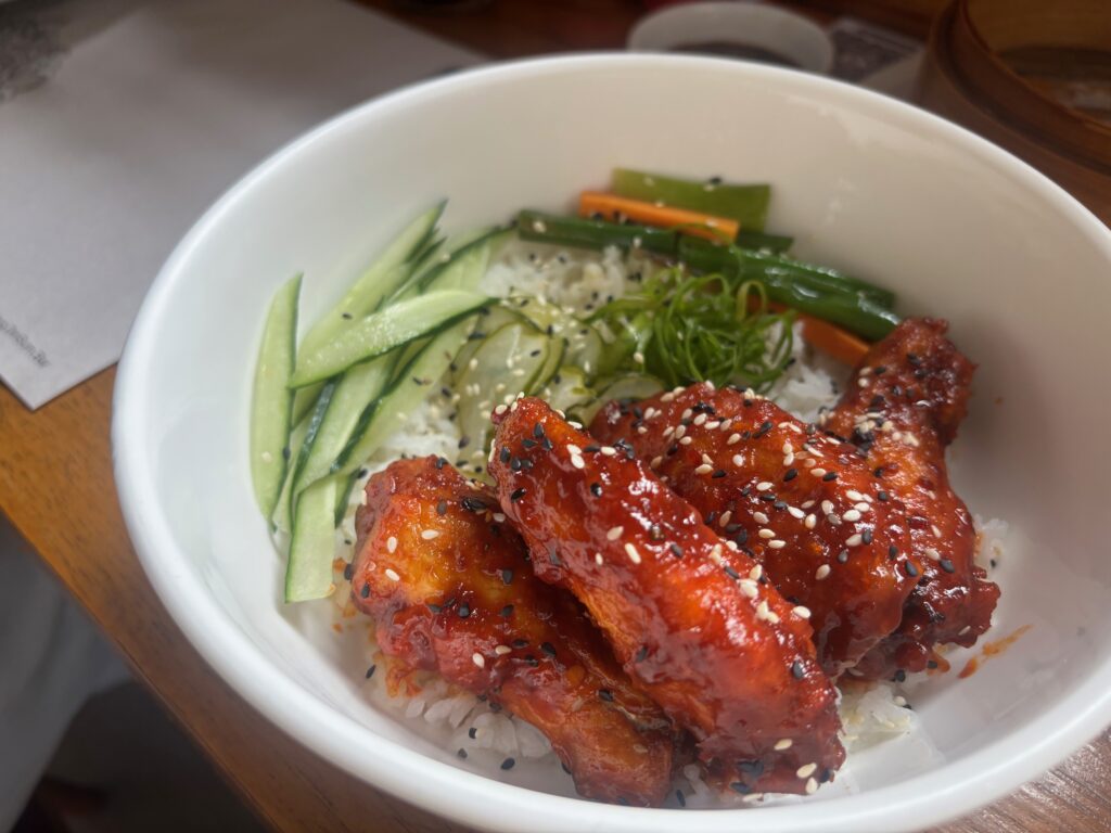 これは英語のメニューに”Chicken Fried Rice”と書いていたのでチャーハンと思い込んで注文したら、ヤンニョムチキンのようなフライドチキンが乗っているご飯でした笑